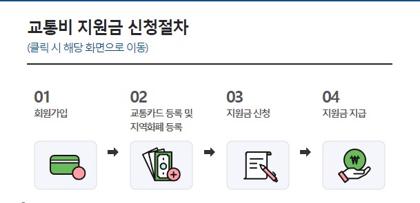 - 신규회원가입 : 회원가입 → 교통카드 등록 → 지역화폐등록 → 신청