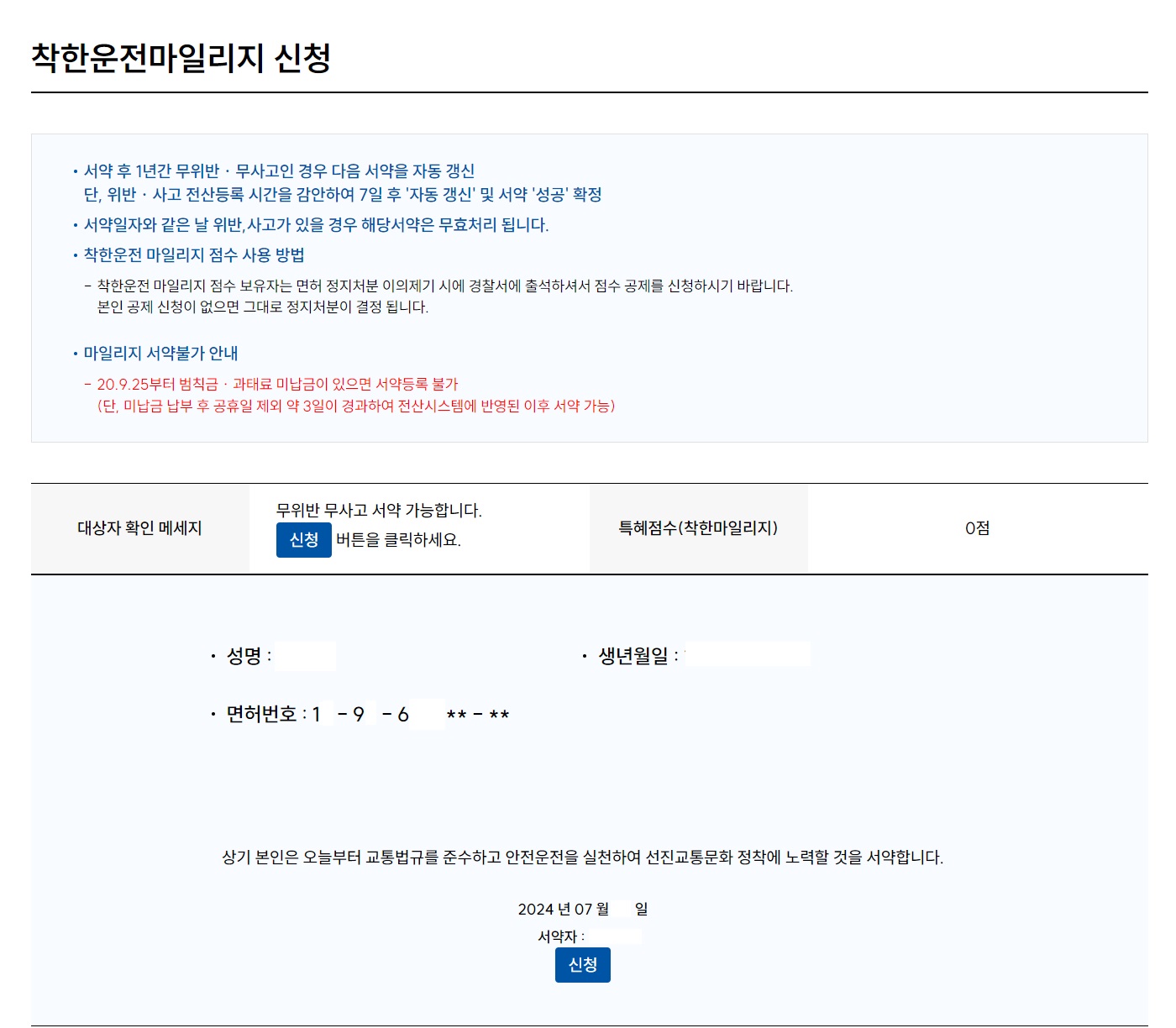 ◾무위반 ㆍ무사고 서약서 신청