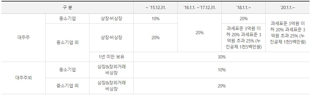 *기본세율은 20%이나 한시적으로 탄력세율 적용