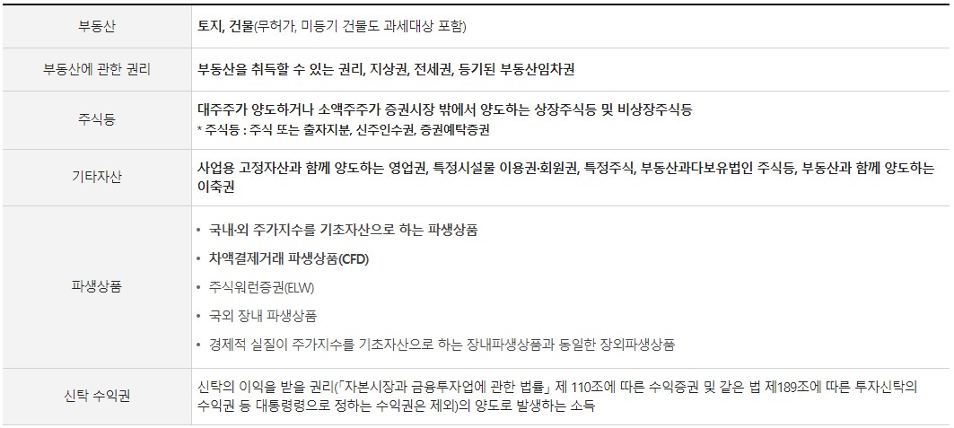 관한 권리를 양도함으로 인하여 발생하는 이익(소득)을 과세대상으로 하여 부과하는 세금을 말합니다.