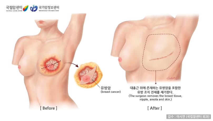 과거에는 유방암 환자에게 유방전체와 유방 아래에 존재하는 근육도 제거하는 수술을 시행하였으나 현재 유방암 환자에서 유방전체를 제거하는 전절제술의 방법은 변형근치절제술로, 대흉근에 암이 침윤하지 않았다면 그 근육을 제거하지 않는 방식입니다.