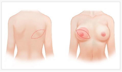 유방보존적 절제술을 시행한 경우라도 결손이 크다면 근육을 이용하여 그 부분을 메울 수 있습니다. 유방재건술은 기본적으로 항암치료나 방사선치료에 영향을 미치지 않으나, 인공 보형물이 들어간 경우에는 방사선치료에 지장을 줄 수도 있습니다.