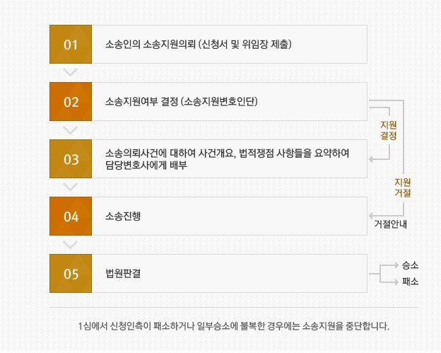 아래의 경우에 소송지원 신청을 받아 소송지원을 결정한 사건이 지원대상이 됩니다.