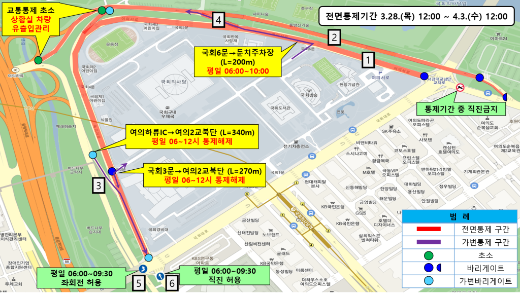 ㆍ전면통제 기간 3.28 (목) 12:00 ~ 4.3(화) 22:00, 8일